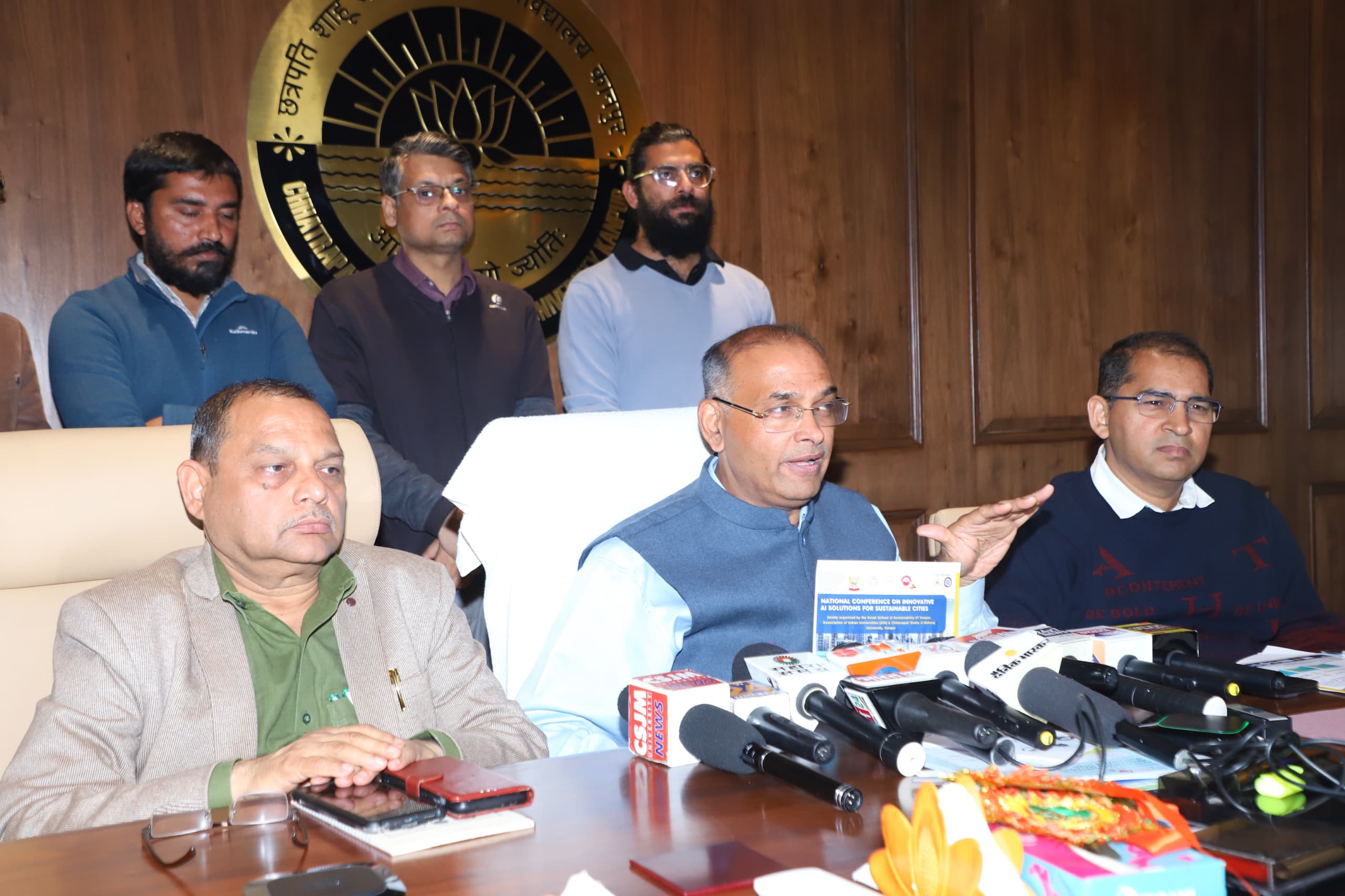 कानपुर : छत्रपति शाहूजी महाराज विश्वविद्यालय कानपुर के सेंटर फॉर अकादमिक भवन में कुलपति प्रो. विनय कुमार पाठक की अध्यक्षता एक प्रेस वार्ता का आयोजन किया गया। प्रेस वार्ता की रूपरेखा आईआईटी कानपुर से कोटक स्कूल ऑफ़ सस्टेनेबिलिटी के डीन प्रोफेसर सच्चिदा नन्द त्रिपाठी ने प्रस्तुत की । इस दौरान उन्होंने बताया कि आगामी 3 व 4 फरवरी को सतत शहरी विकास के लिए “नवाचारी एआई समाधान” विषय एक नेशनल कॉन्फ्रेंस का आयोजन किया जाएगा। यह आयोजन छत्रपति शाहू जी महाराज विश्वविद्यालय कानपुर और आईआईटी कानपुर में होगा।