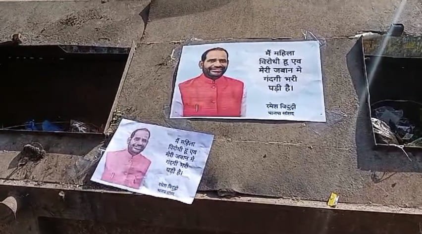 राजस्थान के कोटा में यूथ कांग्रेस ने पूर्व सांसद रमेश बिधूड़ी के खिलाफ अनूठा प्रदर्शन किया और रमेश विधूड़ी के पोस्टर कचरा पॉइंट और नालों में लगा दिए। जिन पर लिखा हुआ था ” मैं महिला विरोधी हूं मेरी जुबान में गंदगी भरी पड़ी है। यूथ कांग्रेस नेता यश गौतम के नेतृत्व में कार्यकर्ताओं ने कोटा में कचरा पॉइंट और नालों में जगह-जगह रमेश विधूड़ी के पोस्टर लगाए। यश गौतम ने कहा कि दिल्ली विधानसभा में भाजपा प्रत्याशी व पूर्व सांसद रमेश विधूड़ी ने प्रियंका गांधी के लिए अभद्र भाषा का इस्तेमाल करते हुए शर्मनाक बयान दिया है। भारतीय जनता पार्टी 2014 से जब से केंद्र में सत्ता में आई है महिलाओं का अपमान कर रही है। इसके विरोध में रमेश विधूड़ी के पोस्टर कोटा के कचरा पॉइंट और नालों में लगाए गए हैं। जिन पर लिखा है ” मैं महिला विरोधी हूं मेरी जुबान में गंदगी भरी पड़ी है।यूथ कांग्रेस नेता यश गौतम ने कहा कि रमेश विधूड़ी का माफी मांगना पर्याप्त नहीं है भारतीय जनता पार्टी को उनके खिलाफ कड़ी कार्रवाई करनी चाहिए।